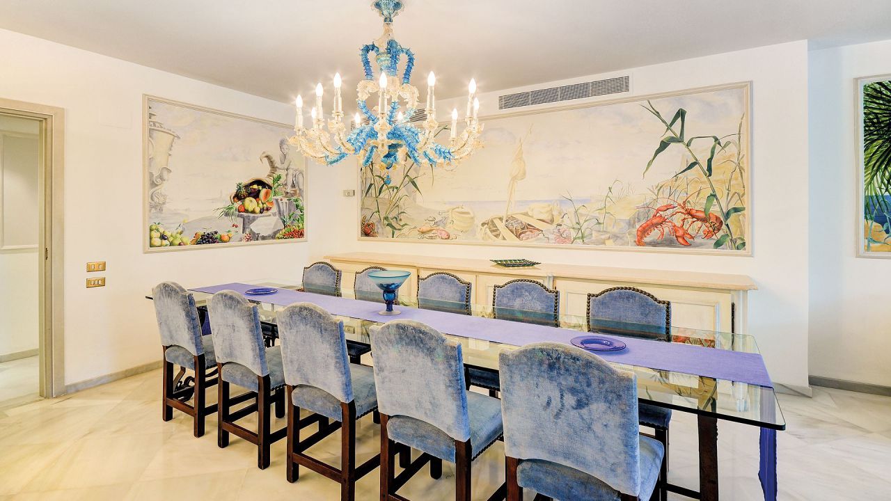 Von der Eingangshalle geradeaus führt ein langer Flur, der durch eine Tür erreicht wird, zur Küche und zu den 5 Schlafzimmern, so dass dieser Bereich vom Rest der Wohnung abgeschirmt ist und ein Maximum an Privatsphäre bietet.