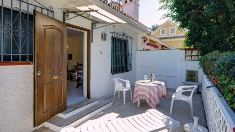 Gemütliche Doppelhaushälfte auf einer Ebene mit davor liegender Terrasse und privatem Garten. Das Haus ist mit ca. 45m² Wohnfläche ausgestattet und unterteilt sich in Wohn-Essbereich, Küche, Schlafzimmer und Badezimmer sowie eine großzügige Terrasse.