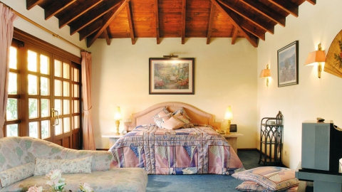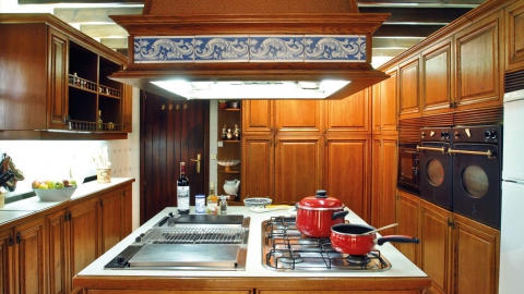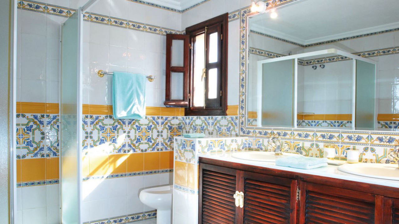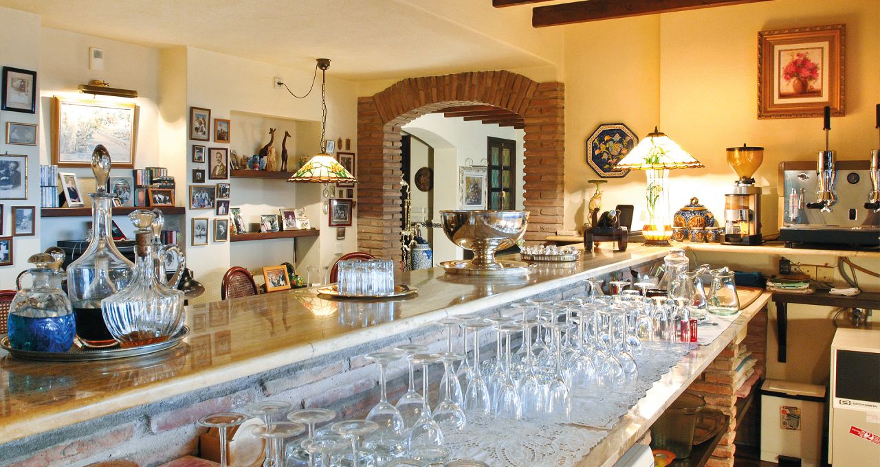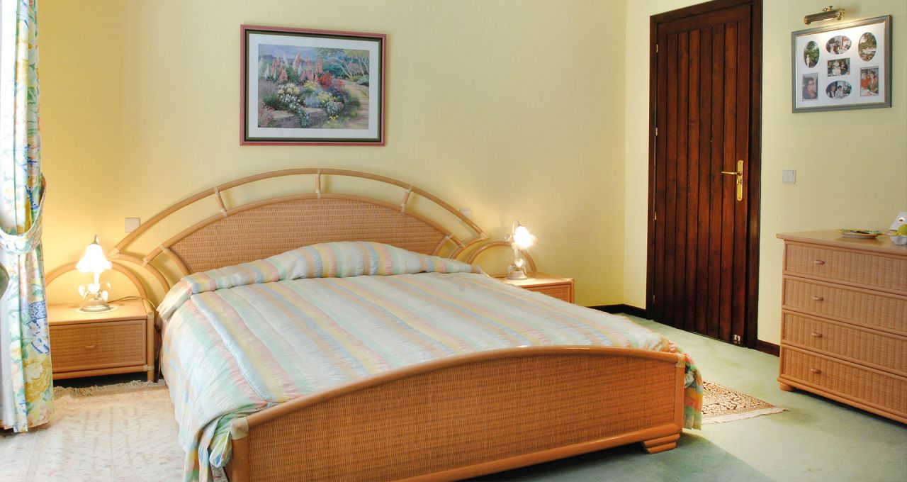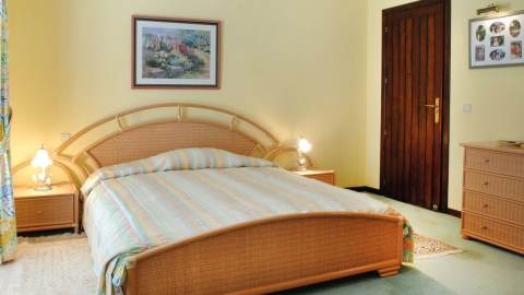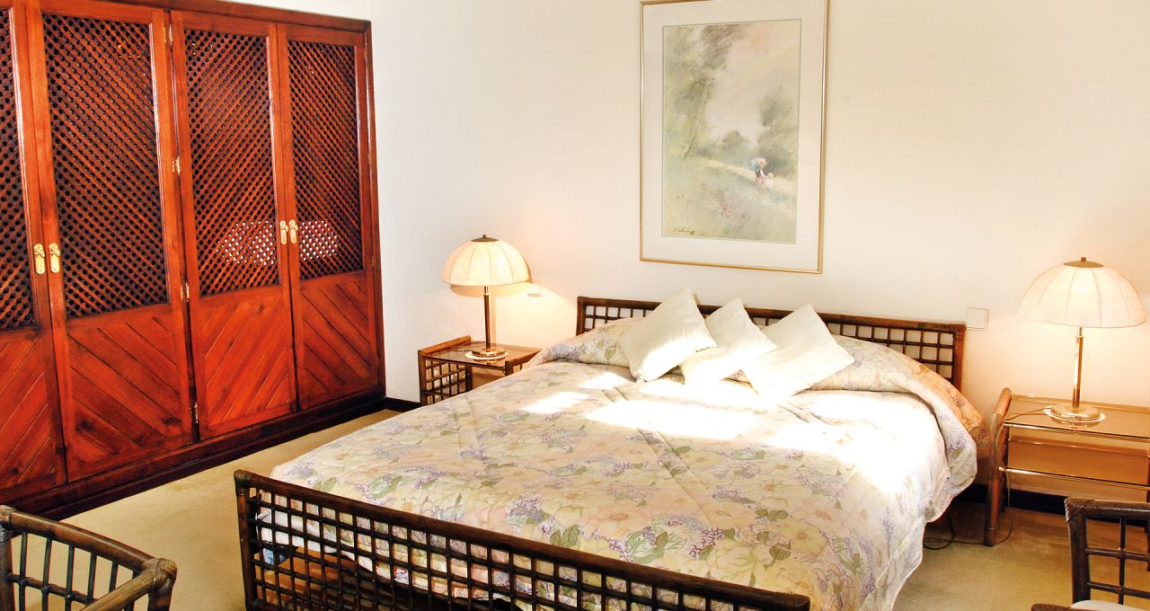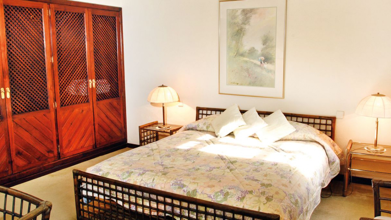 Linker Hand vom Wohnbereich befindet sich ein separater Essbereich für spezielle Anlässe sowie der Zugang zu den beiden Schlafzimmern der unteren Ebene mit ihren en-suite Bädern. Rechter Hand schließt sich weiterer Aufenthaltsbereich mit einer Bar und Gesellschaftszimmer und einem weiteren Kamin an. In allen Räumen sorgen die breiten Terrassentüren den ganzen Tag für eine natürliche Helligkeit und ermöglichen jederzeit den direkten Zugang zur Terrasse. Auf der unteren Ebene befindet sich auch die komplett ausgestattete großzügige Küche mit separatem Zugang sowie Waschküche und Abstellraum.