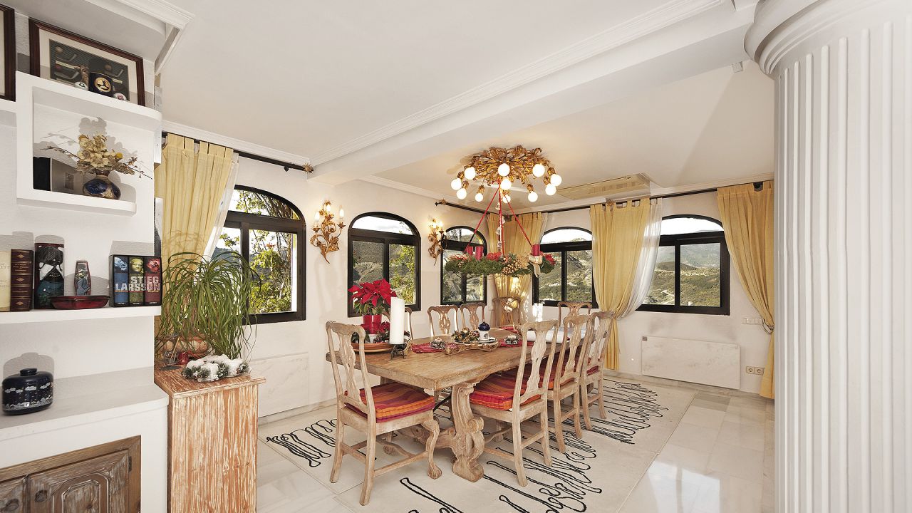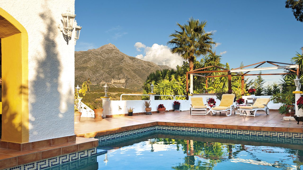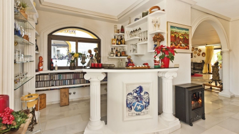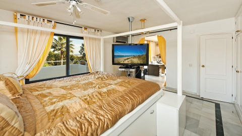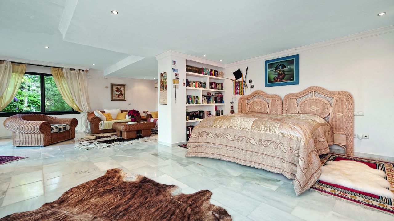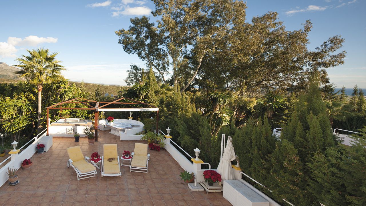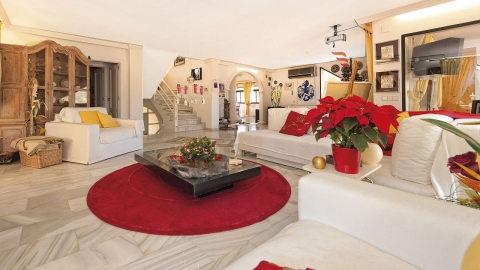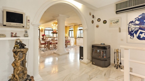 Die nach Osten ausgerichtete und auf einem ca. 1.558 m² großen Grundstück gelegene, großzügige Familien-Villa mit Meerblick in Nueva Andalucia verteilt sich auf drei Ebenen. Auf einer bebauten Fläche von ca. 466 m², bietet sie 5 Schlafzimmer, 4 Badezimmer, einen geräumigen Wohnbereich mit Kamin, ein Esszimmer, eine große Wohnküche, diverse Terrassen und einen Pool.