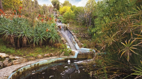 Auf der unteren Ebene befinden sich zwei weitere Schlafzimmer mit en-suite Badezimmern und direktem Zugang zu den Terrassen sowie dem schön gestalteten Garten mit seinem angelegten Wasserfall.